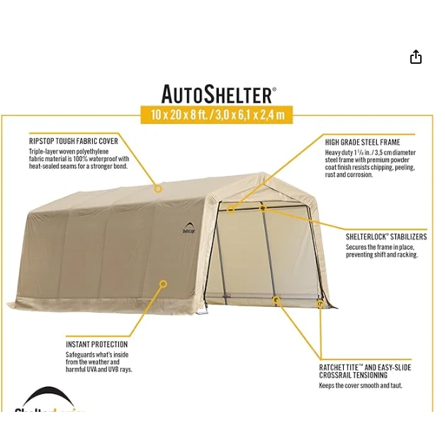 Включены компоненты (1) стальная рама с 8 стальными стабилизаторами укрытия (1) облегающая крышка из песчаника (1) Двойная дверная панель на молнии (1) Сплошная задняя панель (4) 15-дюймовая шнека Anchorseasy Пошаговые инструкции