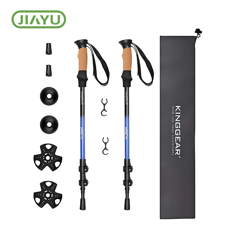 Походная палка из углеродного волокна. Легкие и компактные, они идеально подходят для путешествующих туристов, туристов и искателей приключений, которым нужно надежное снаряжение, которое легко упаковать. Компания Zhejiang Jiayu Outdoor Products Co., Ltd., наши треккинговые палки включают в себя прочные аксессуары и карбид вольфрама. советы для любой местности. В комплект поставки входят чехол и зажим для удобства транспортировки и хранения.