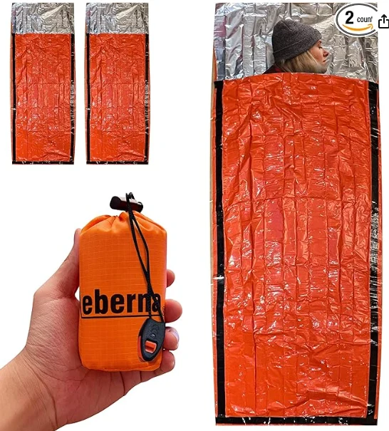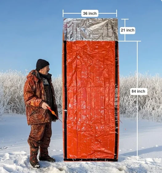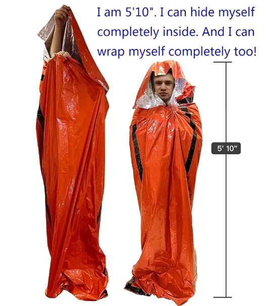 Спятный мешок для выживания в чрезвычайных ситуациях может увеличить ваши шансы на выживание в любую погоду, все сезоны и все обстоятельства. Он изготовлен из прочного изоляционного материала Mylar, разработанного NASA для изучения космоса. Он сохраняет / отражает назад 90% тепла тела. Это многоразовый, водонепроницаемый и ветрозащитный.