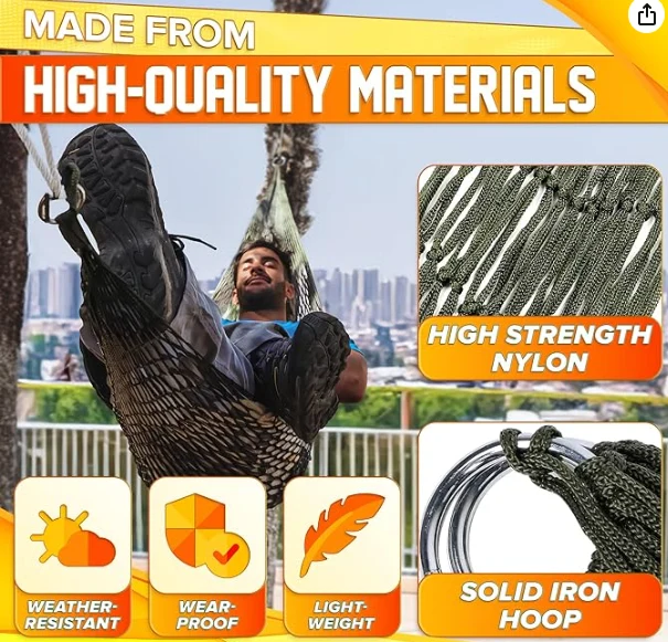 Походы на висящем гамаке, этот нейлоновый струнный гамак обладает высокой грузоподъемностью. Эти нейлоновые гамак идеально подходят для внутреннего и наружного