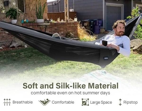 5. Легко фиксировать, просто почините гамак с помощью 2 -за связки и завяжите струны с деревьями или полюсами.
