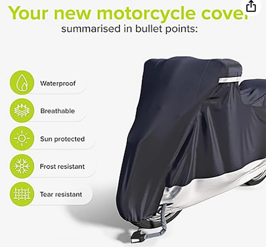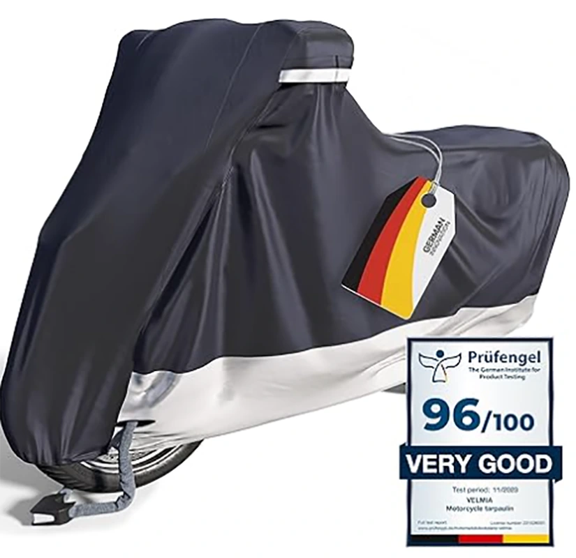 Водонепроницаемый навес для мотоцикла 600D. Здесь ваш велосипед будет оптимально храниться! Чехол для мотоцикла защищает от дождя, ветра, солнца, снега, пыли, грязи, птиц, мокрых листьев и многого другого. Теперь можно без проблем закрыть даже теплые выхлопные трубы с температурой до 575 °F!