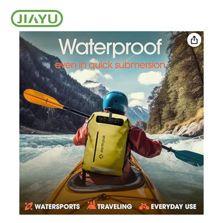 Водонепроницаемый сухой рюкзак. Большой брызговитой молнии снаружи для быстрого захвата и снятия и встроенного кармана на молнии, сетчатого отсека и кольца с ключом внутри. Зецзян Цзяю на открытом воздухе Co., Ltd. Компактный и легкий для легкого переноса на самолете и закрывающейся верхней части обеспечивает максимальную защиту. Удобные D-кольца, прикрепленные как к плечевым ремням, так и к петле Molle System, которые обеспечивают привязку к защелке во время катания на лодках или на велосипеде.