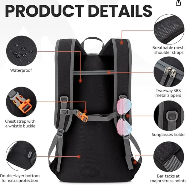 Водонепроницаемые походные складные рюкзак, зажим для грудной клетки с пряжкой, отлично работая, чтобы распределить вес упаковки и сохранить его устойчивым и центрированным. Обязательно иметь для спорта, пеших прогулок и кемпингецзян Цзяйю Outdoor Products Co., Ltd. повышение видимости во время ночных мероприятий на свежем воздухе. Этот дизайн гарантирует, что вы останетесь видимыми для других, повышая безопасность, когда вы выходите после наступления темноты