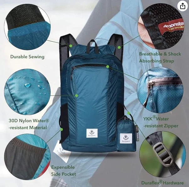 Водонепроницаемый легкий походный рюкзак, складный рюкзак обеспечивает достаточно места для путешествий на открытом воздухе, кемпинга, походов, однодневных поездок и покупок. Поставляется с основным карманом на молнии, передним карманом на молнии и двум сетчатым боковым карманом. Зецзян Цзяйю Outdoor Products Co., Ltd. Мы хотим убедиться, что у вас есть удивительный опыт с нами. 30 -дневный без сбоев возврата / бесплатный обмен, 12 -месячная гарантия.